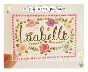 Your Pretty Name Picture will be painted on high quality, thick card, using soft and delicate watercolour and gouache paints, with a touch of sparkle detail.