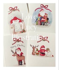 4 of my Father Christmas paintings turned into collectable cards, printed professionally in the UK, on beautifully textured, high quality card. You will receive one of each design.