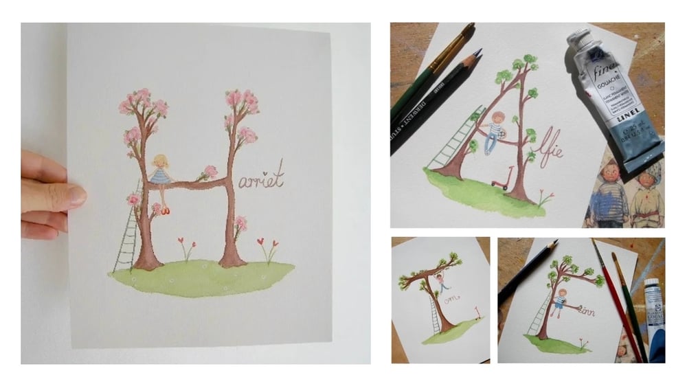 Your Tree Name picture will be painted on high quality Fabriano watercolour card, using soft and delicate watercolour and gouache paints.